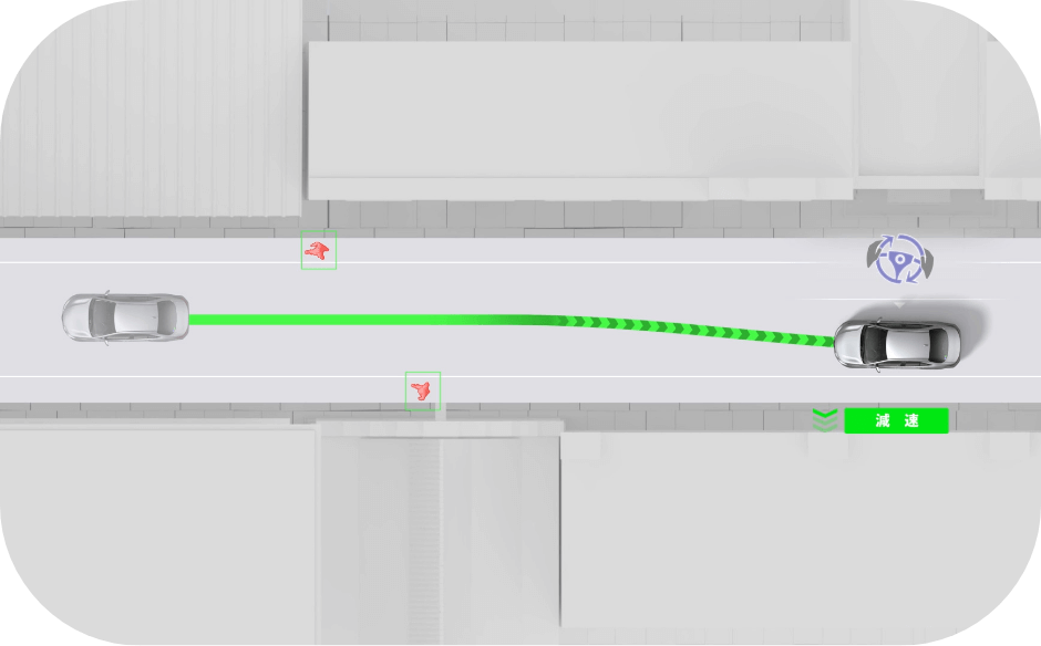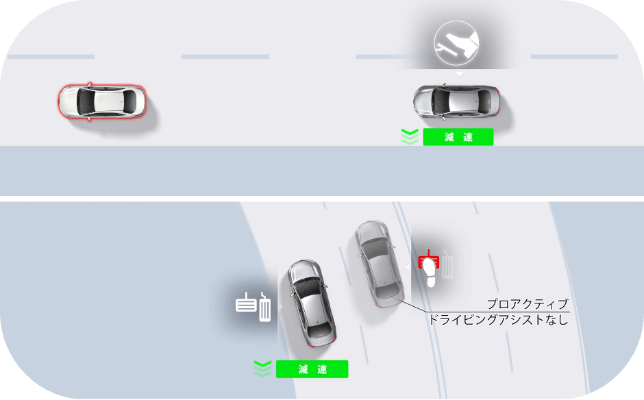 リスクを先読みし、危険に近づきすぎないようにステアリング・ブレーキ操作をサポートします。