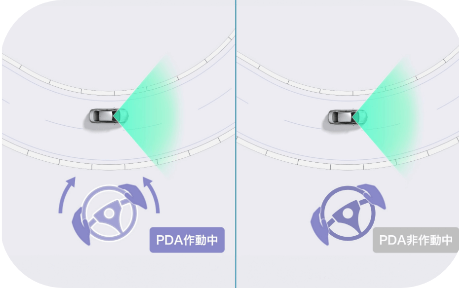 ドライバーの操作を先読みして、ステアリングの反力を変化させることで、不要な操作の抑制や、操作遅れを防止し、スムーズな走行をサポートします。