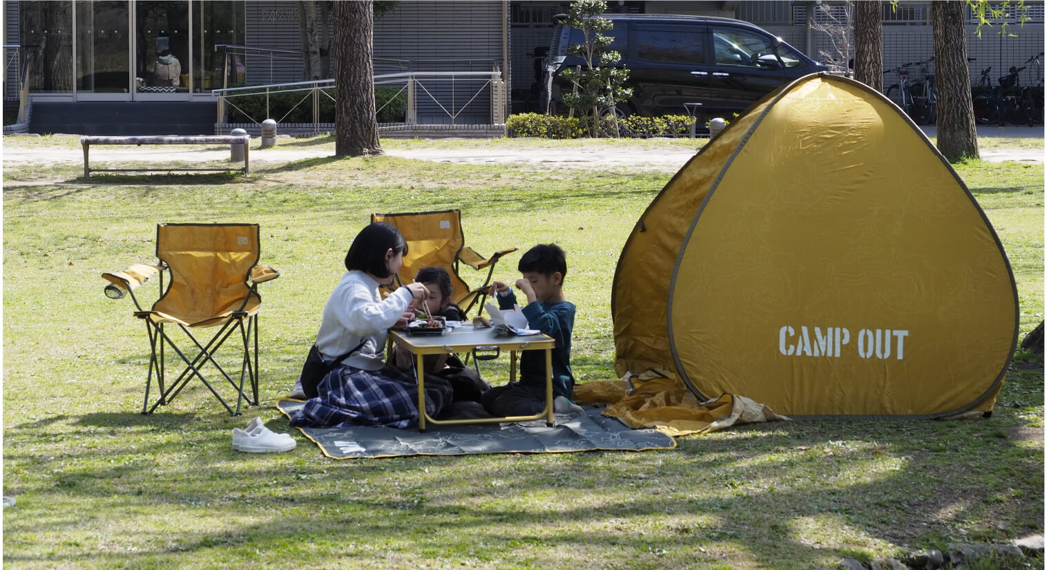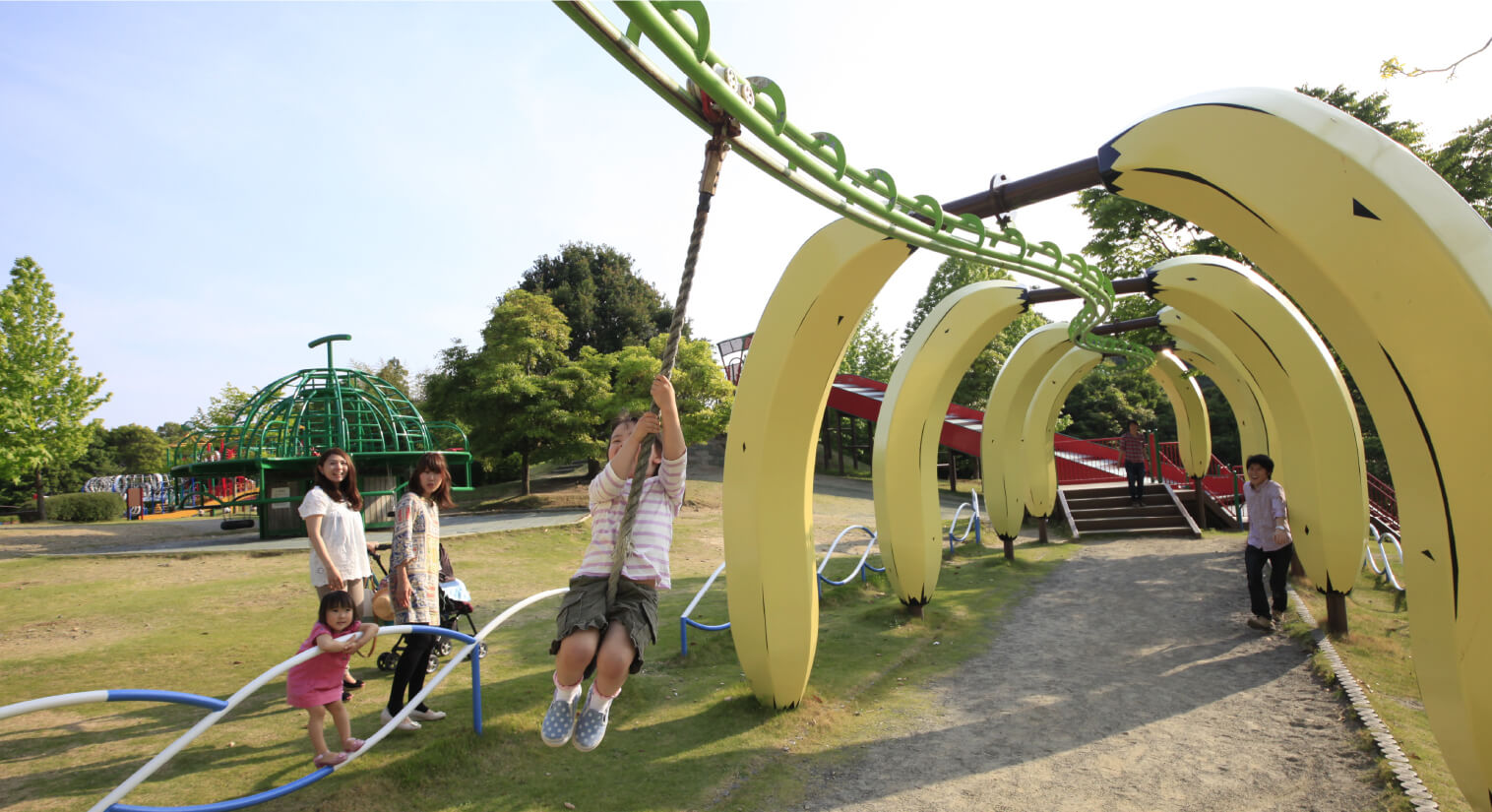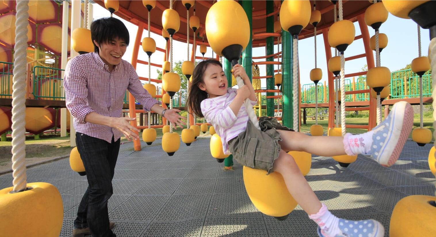 お子さまに大人気の室内遊具や、アウトドアグッズを借りてピクニックも可能な大きな公園です!