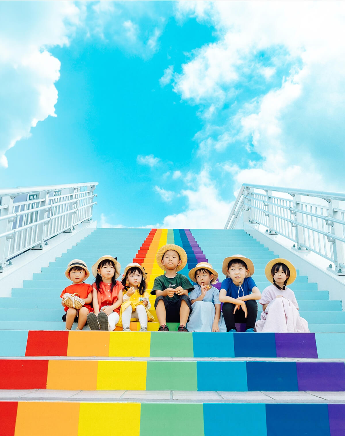 虹の階段に集う子どもたちの瑞々しい感性と、夏の終わりを彩る鮮やかなお母様の発想力が光りました👒🌈✨️