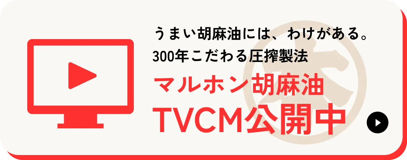 マルホン胡麻油のおいしさの秘密は300年続く「圧搾製法」にあります。シンプルにごまに圧力をかけ、余計なものは何も入れない。そんなマルホン胡麻油だからこそごま本来の旨みや香りを活かし、素材の味を引き立てることができるごま油になるのです。