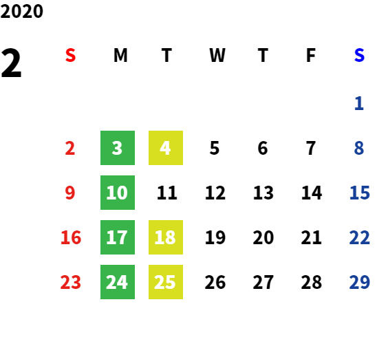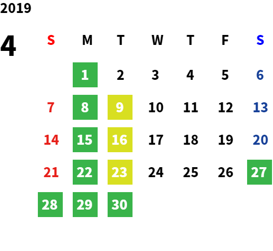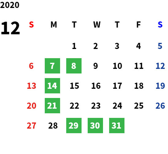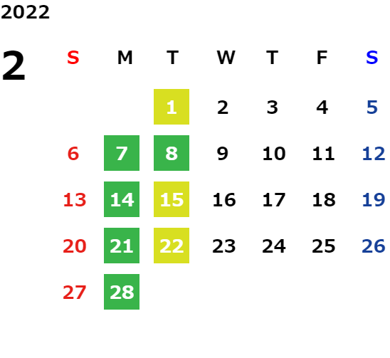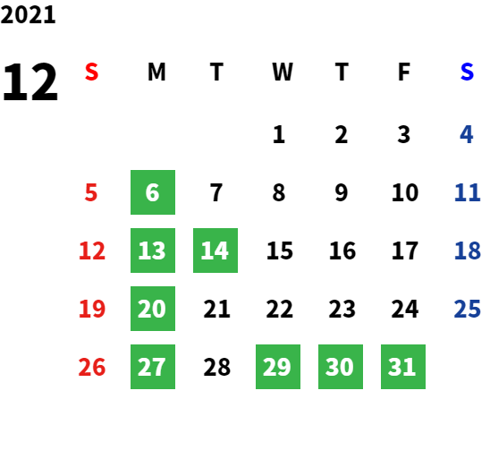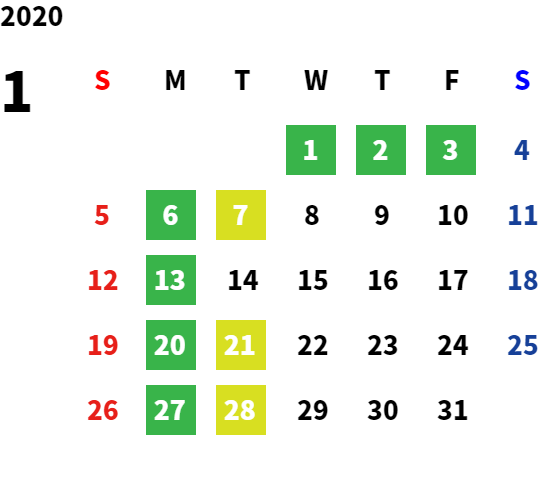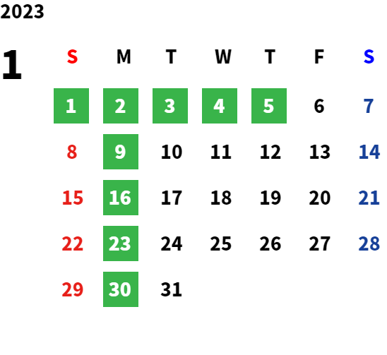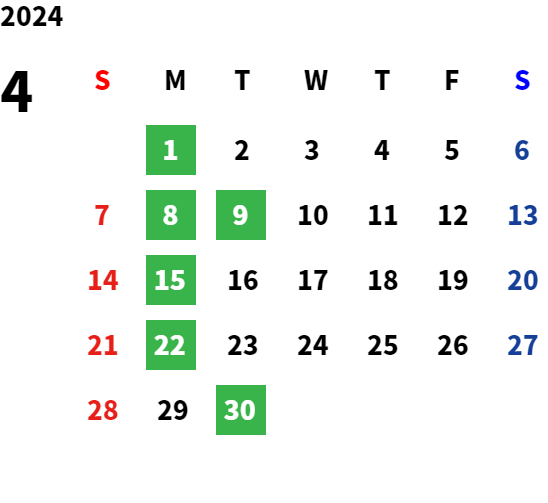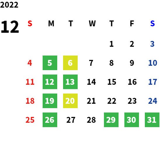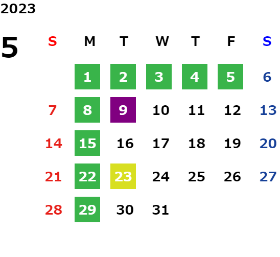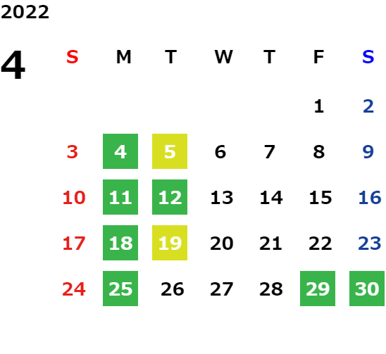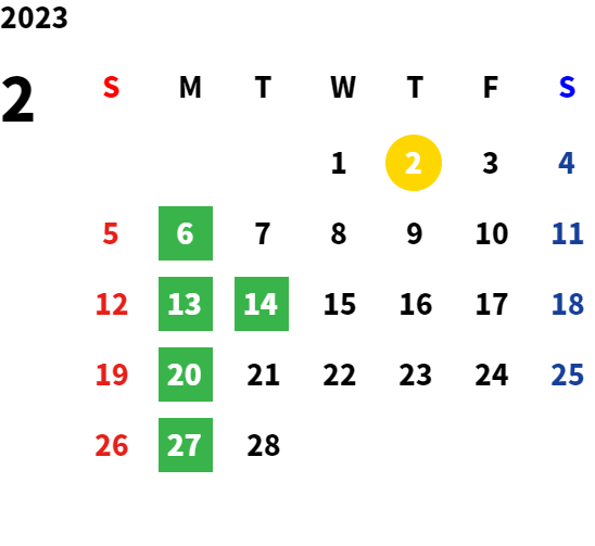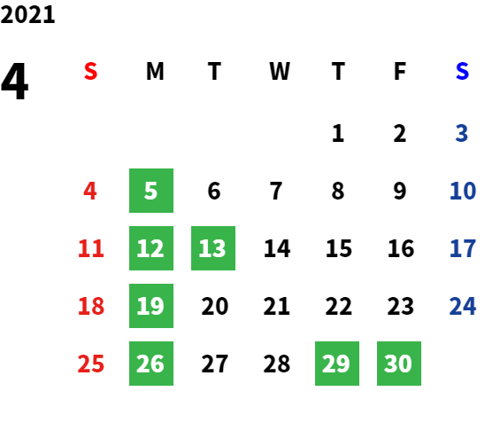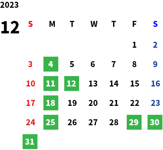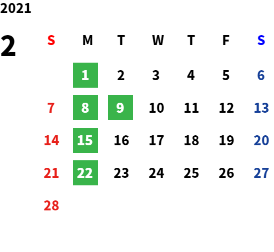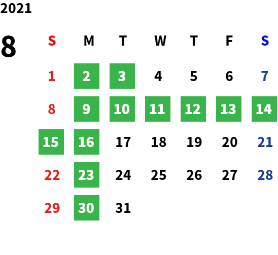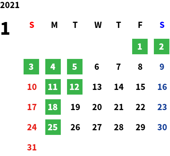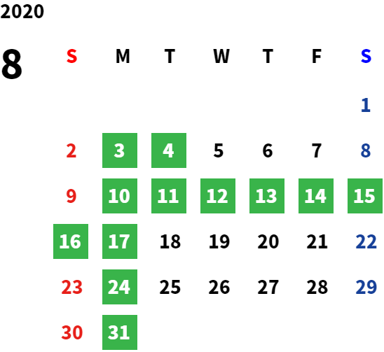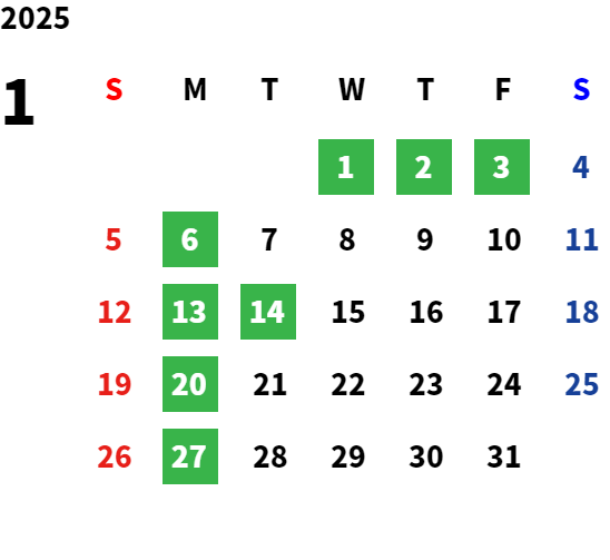 営業日カレンダー