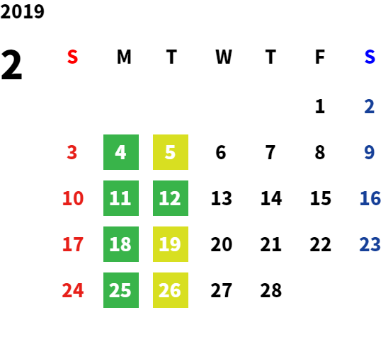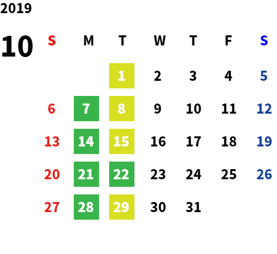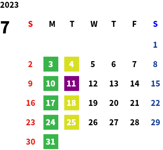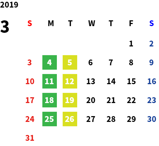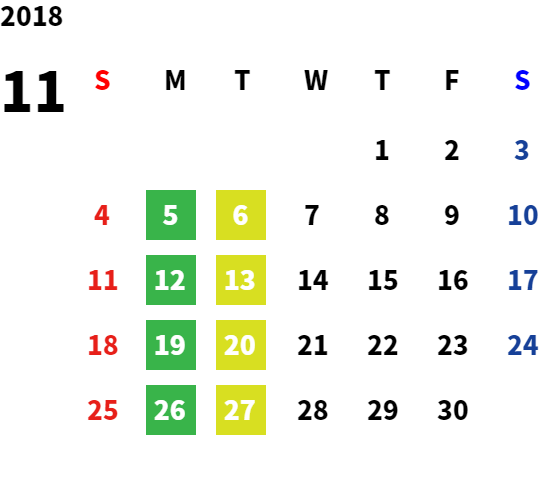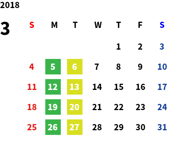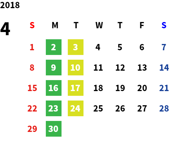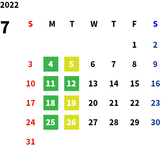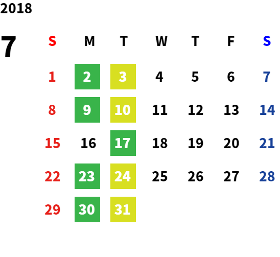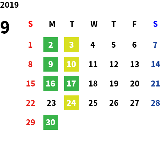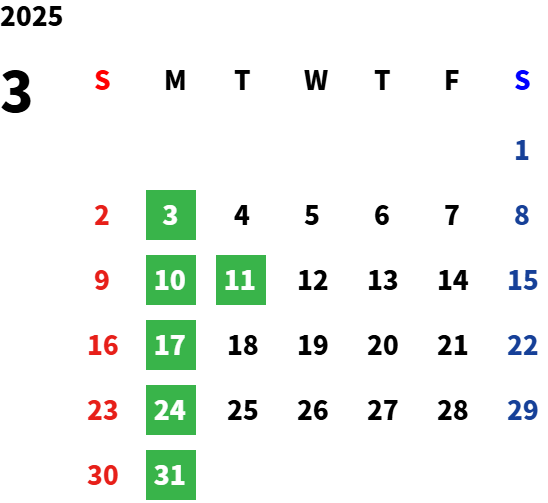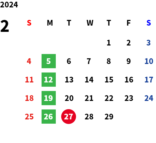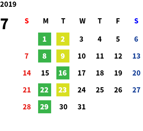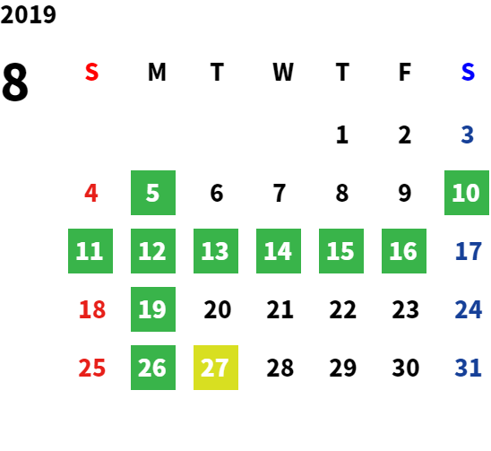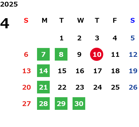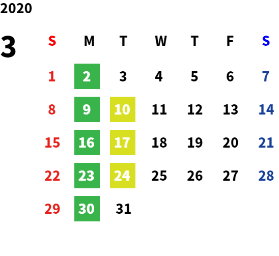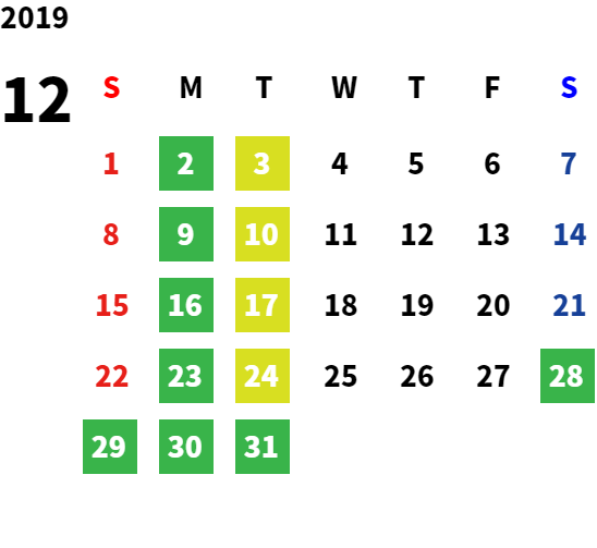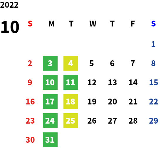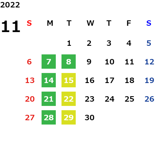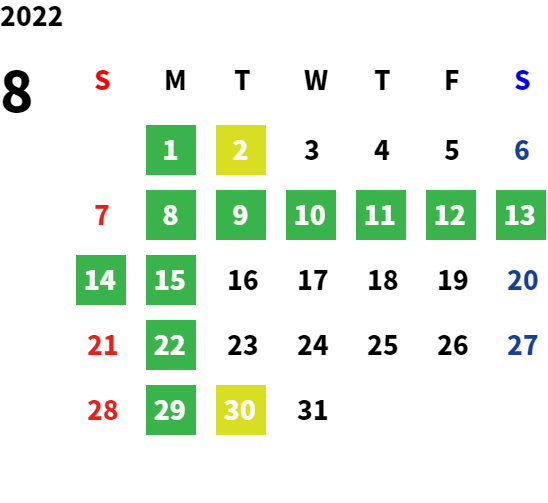 営業日カレンダー